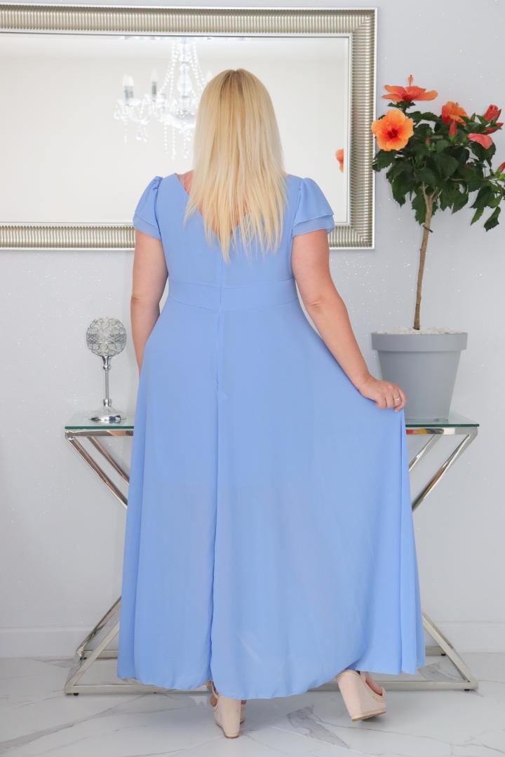 Sukienka Milos rozkloszowana zwiewna z szyfonu kopertowy dekolt błękitna