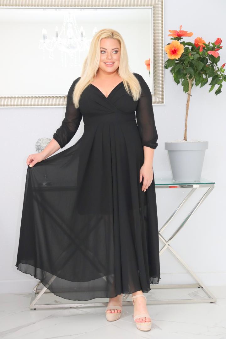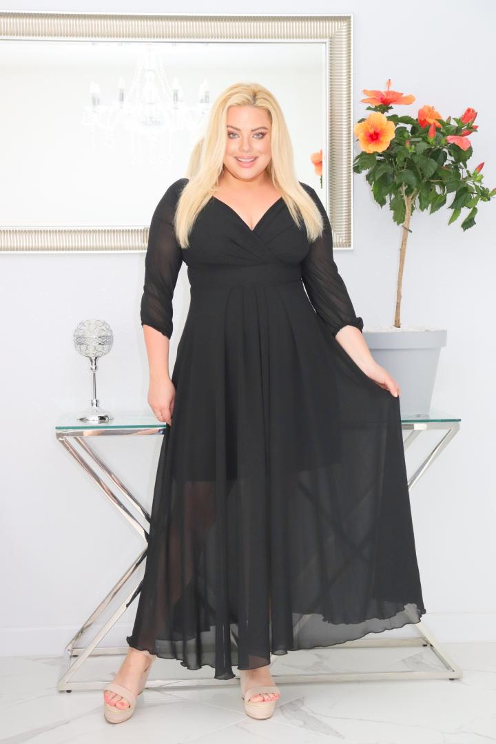 Sukienka Milos rozkloszowana zwiewna z szyfonu kopertowy dekolt czarna