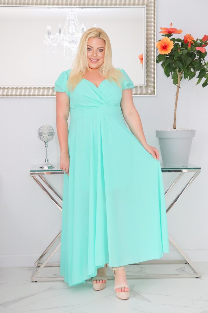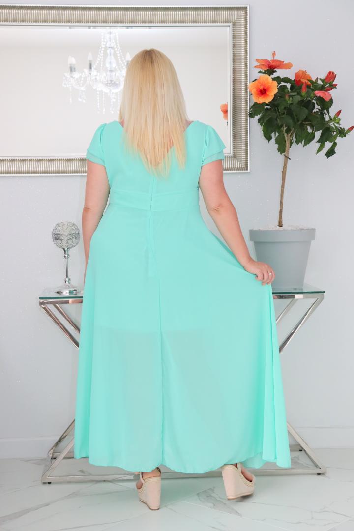 🇵🇱 Polski ProduktSukienka Milos rozkloszowana zwiewna z szyfonu kopertowy dekolt miętowa