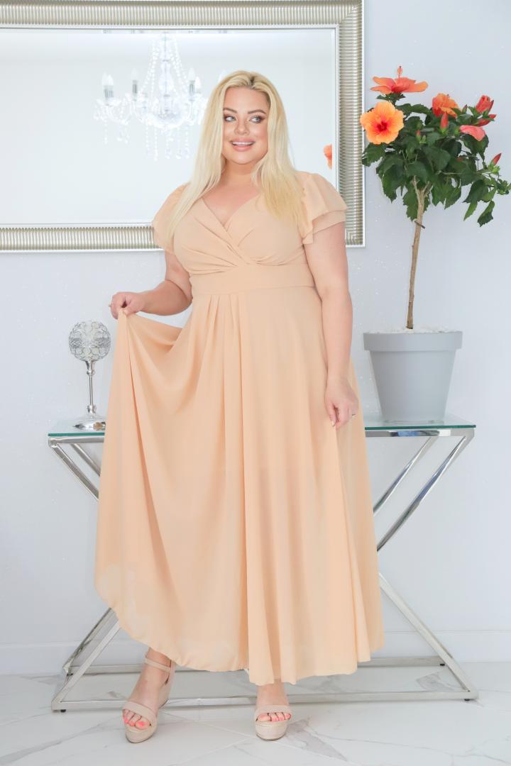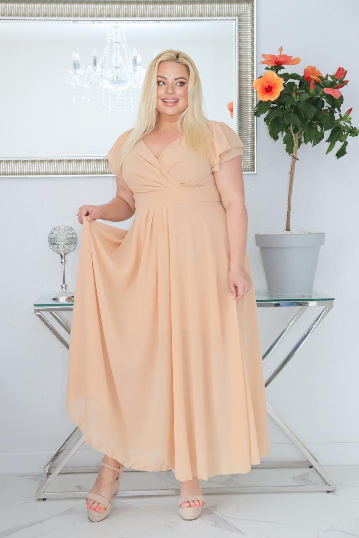🇵🇱 Polski ProduktSukienka Milos rozkloszowana zwiewna z szyfonu kopertowy dekolt nude