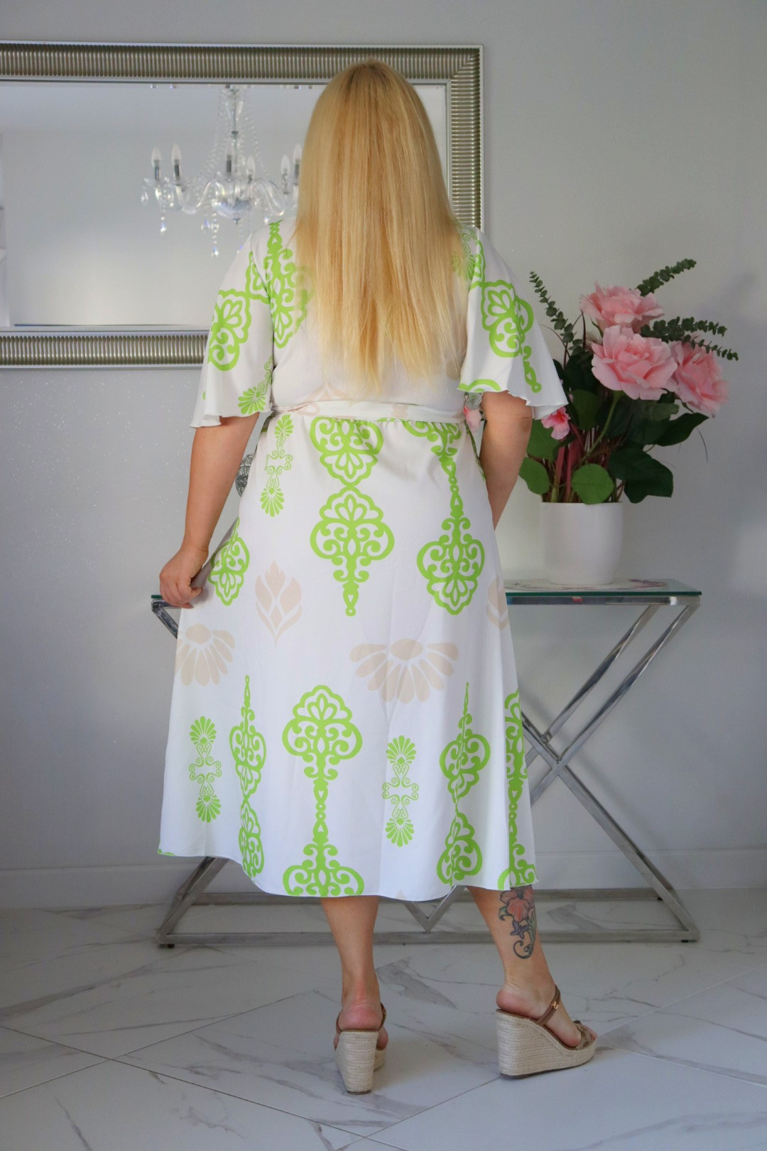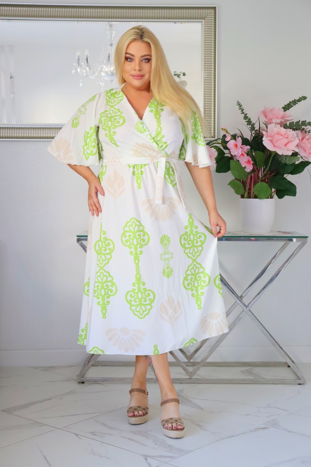 Długość sukienki maxi jest zazwyczaj standardowa, ale możesz ją sprawdzić od ramienia (lub linii dekoltu) aby upewnić się, że długość będzie odpowiednia dla Twojego wzrostu.