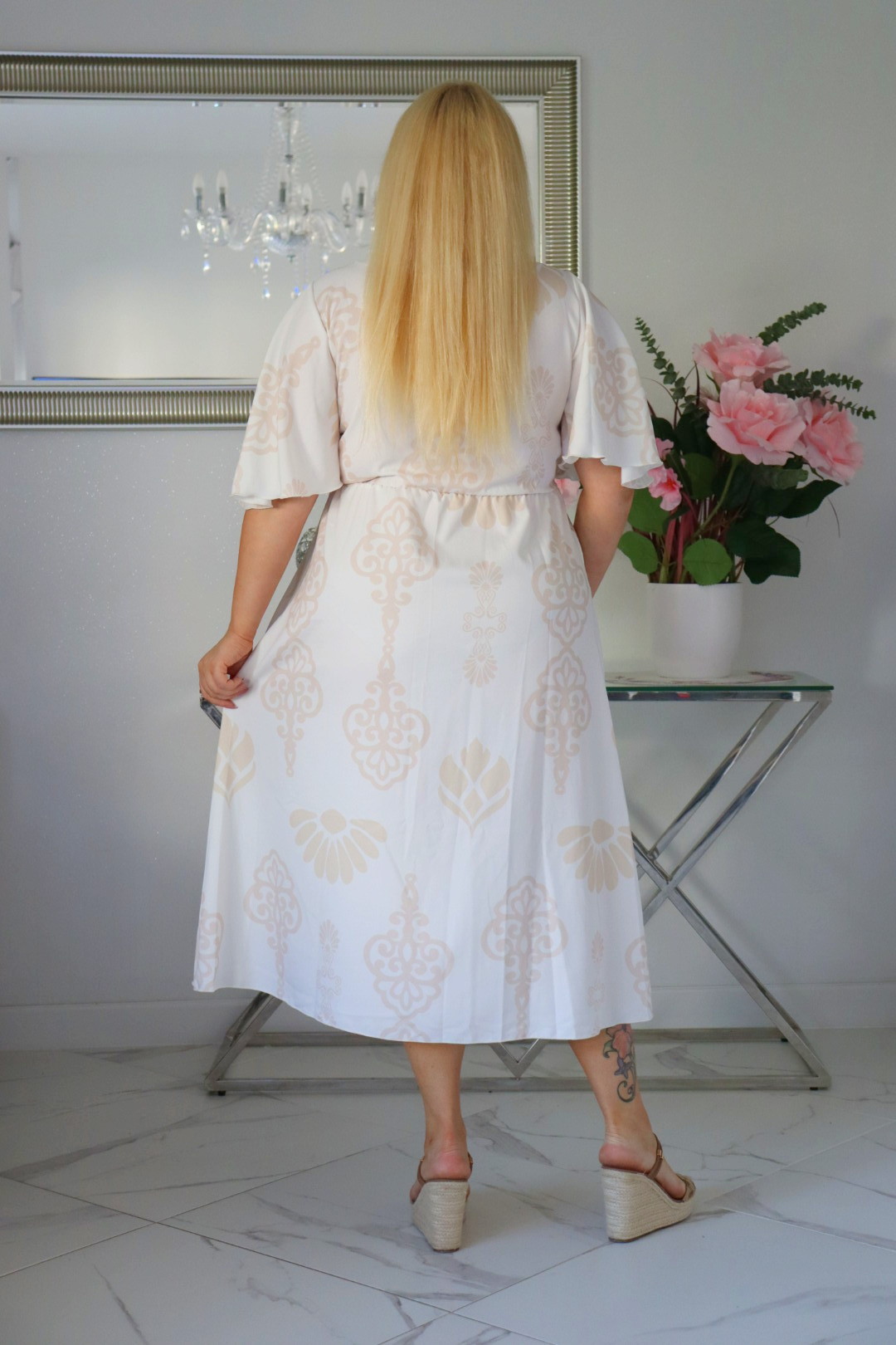 Sukienka MONSORI została wykonana z lekkiej, przewiewnej tkaniny, co zapewnia komfort noszenia nawet w najcieplejsze dni. Miękki i przyjemny w dotyku materiał sprawia, że idealnie układa się na ciele, nie krępując ruchów. Dzięki temu czujesz się swobodnie i komfortowo przez cały dzień. Elastyczna talia doskonale dopasowuje się do sylwetki, co zwiększa wygodę i sprawia, że sukienka jest odpowiednia dla różnych typów figur. Jest to idealny wybór na długie letnie spacery, spotkania ze znajomymi, a nawet do pracy.