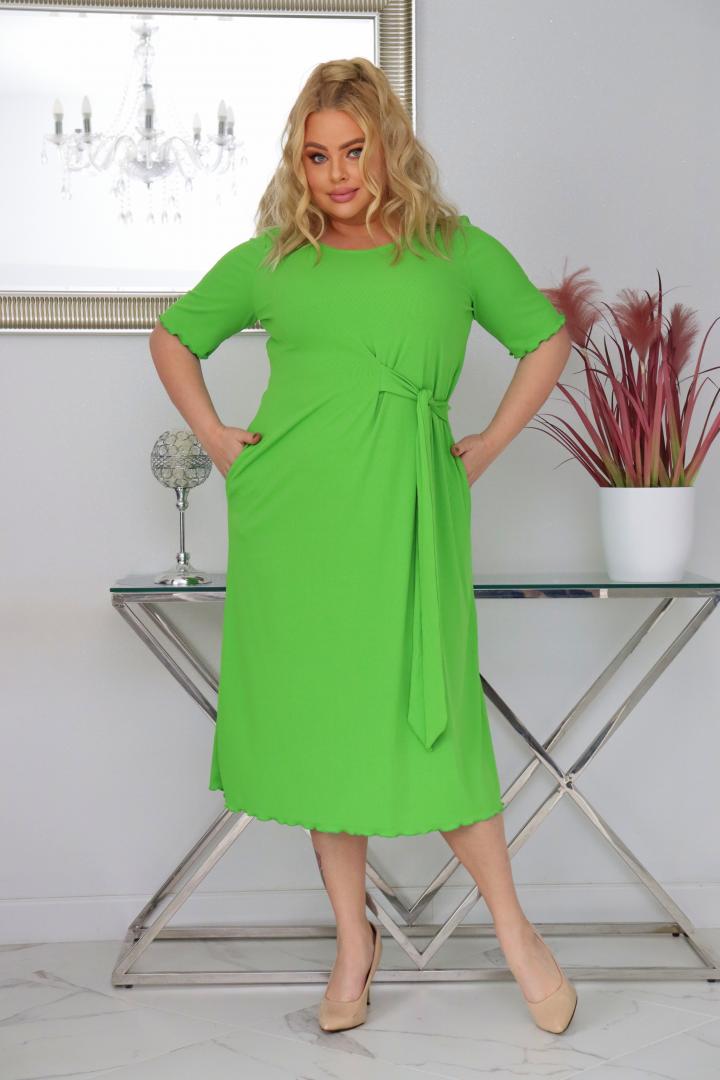 🇵🇱 Polski ProduktSukienka Natasza rozkloszowana midi dzianina wiązana w pasie jasnozielona