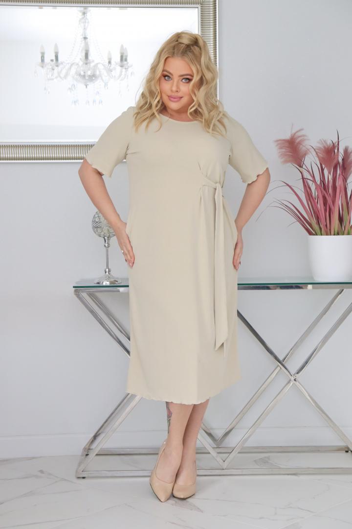 Sukienka Natasza rozkloszowana midi dzianina wiązana w pasie nude