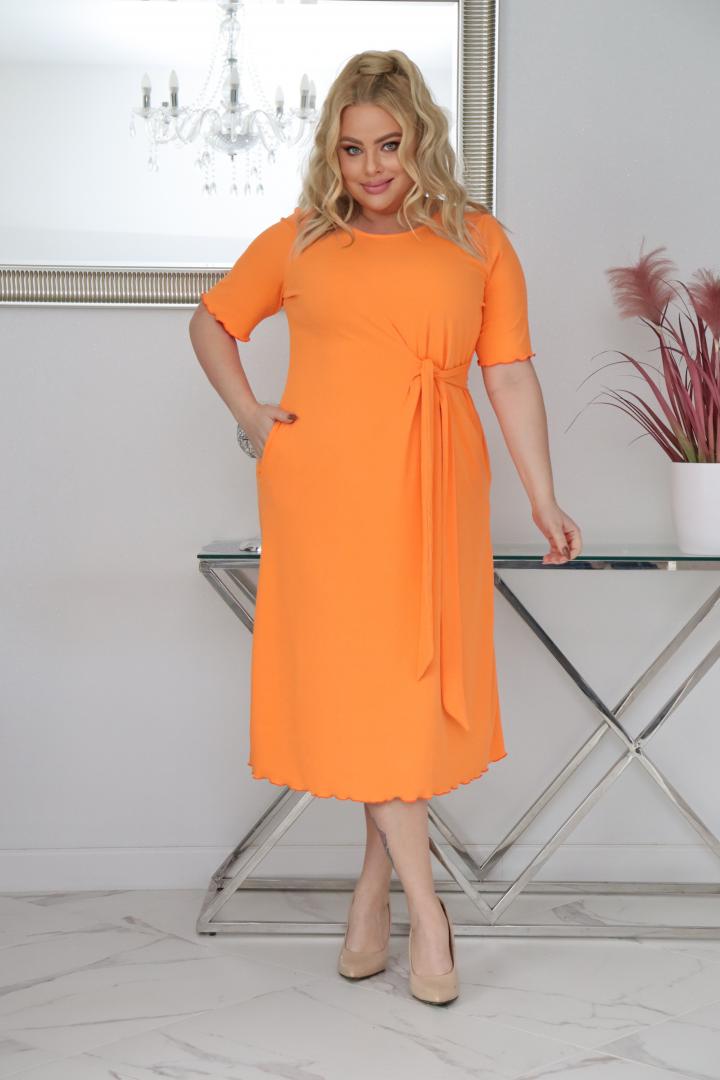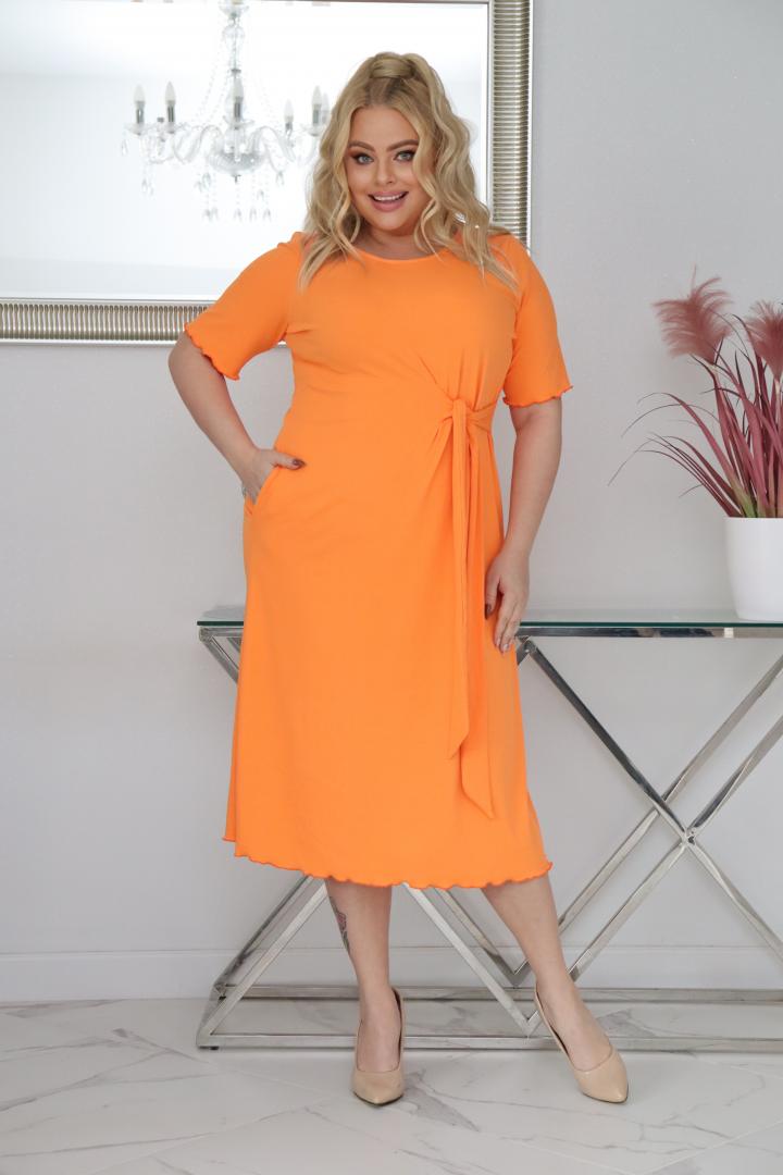 Sukienka Natasza rozkloszowana midi dzianina wiązana w pasie pomarańczowa