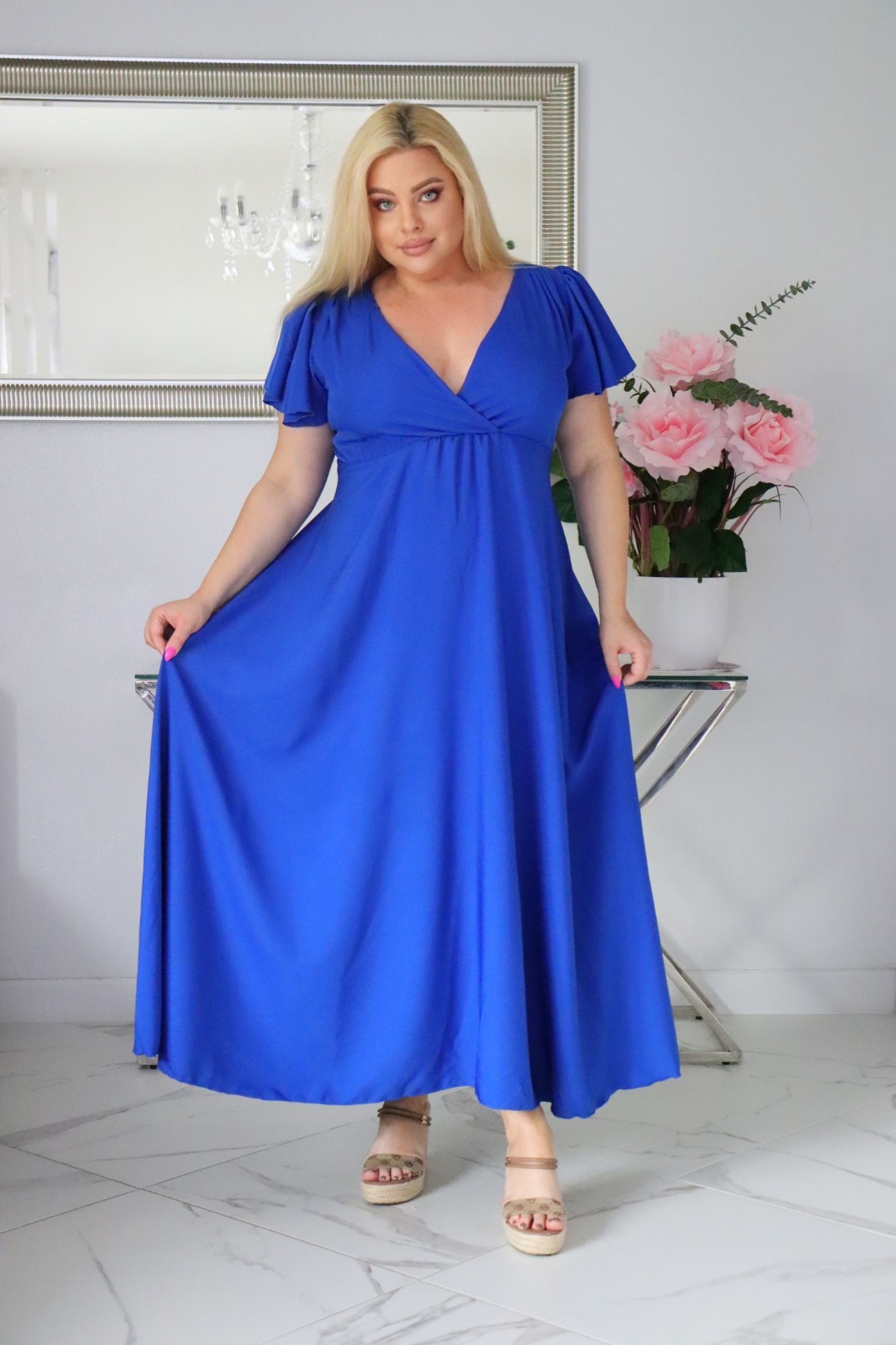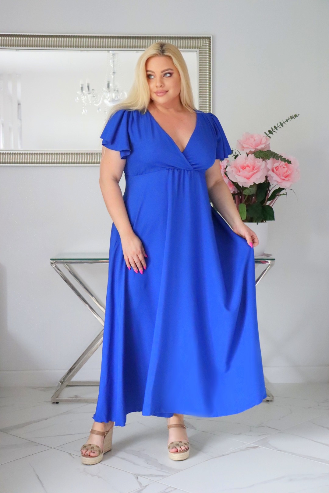 Sukienka NESADINA rozkloszowana z kopertowym dekoltem.