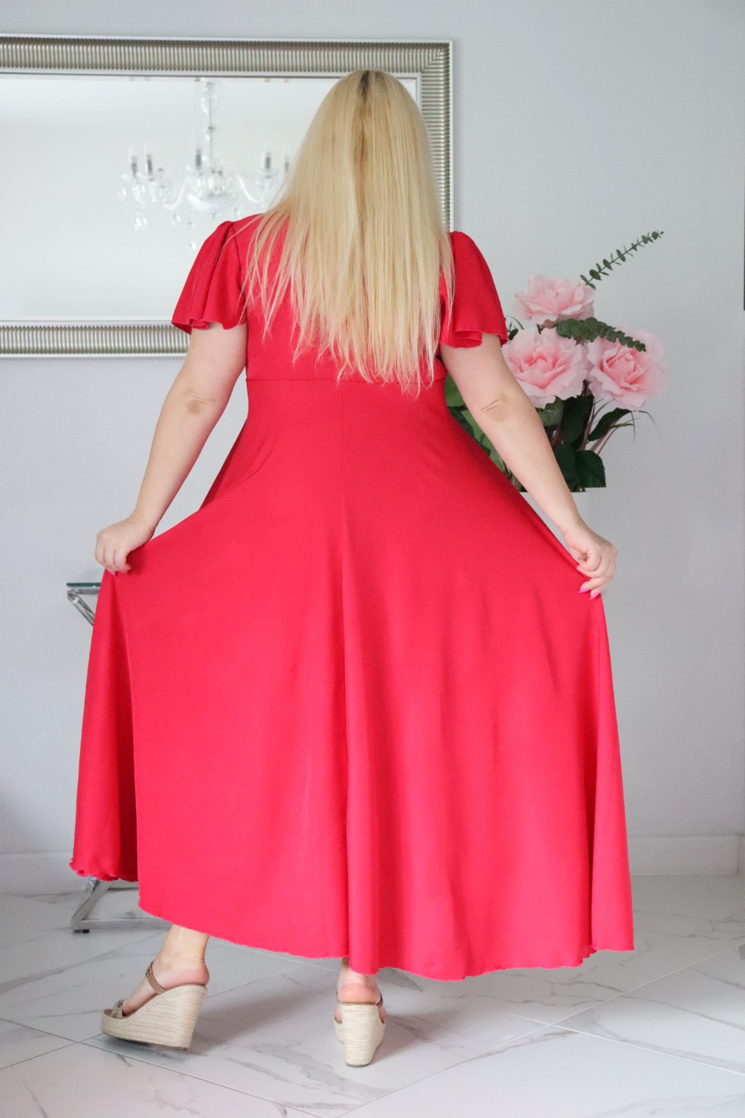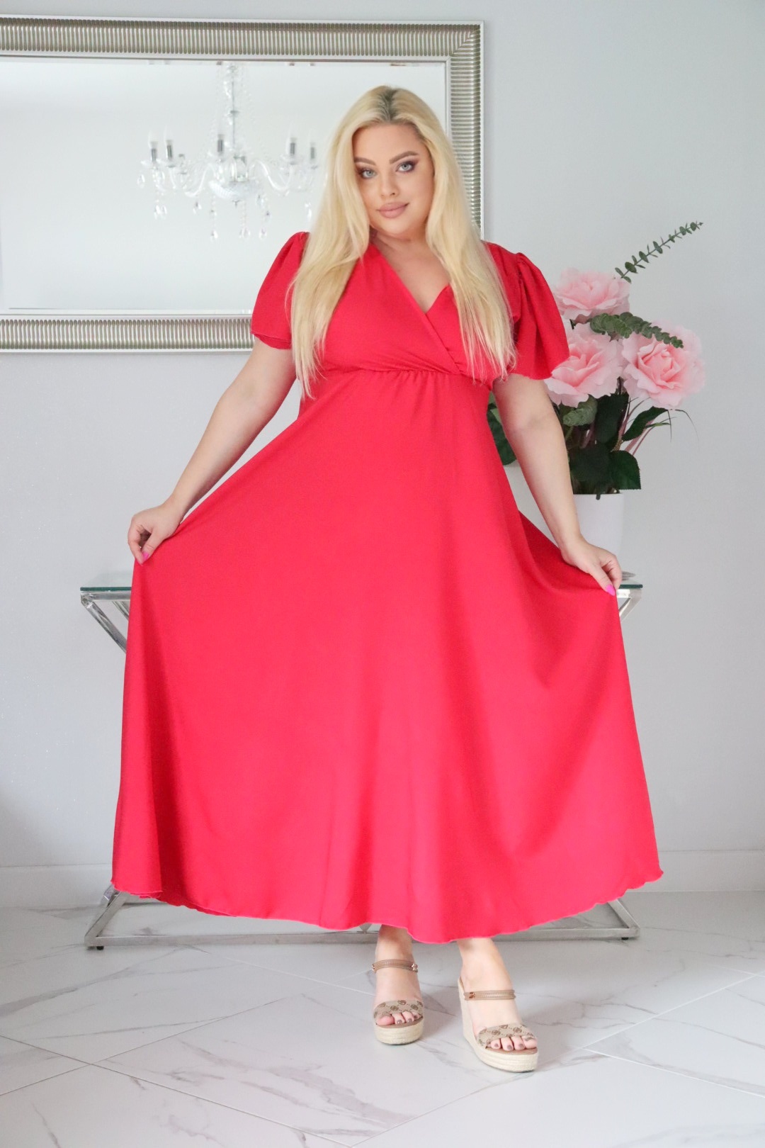 Sukienka NESADINA rozkloszowana z kopertowym dekoltem.