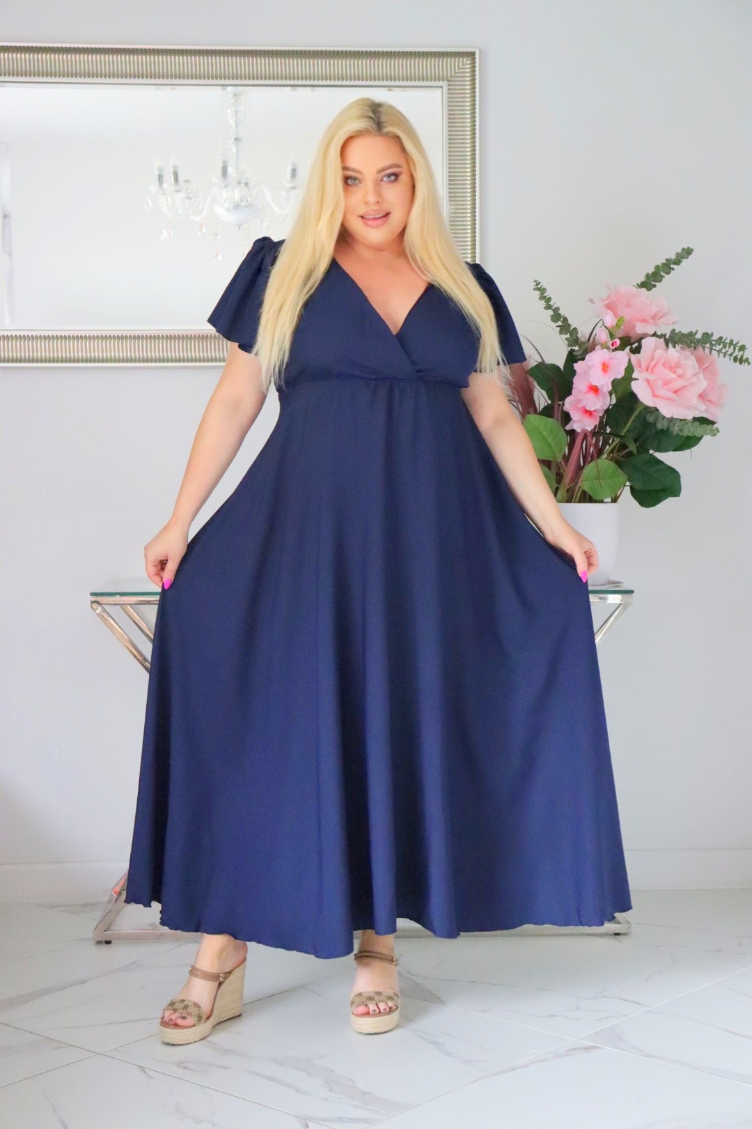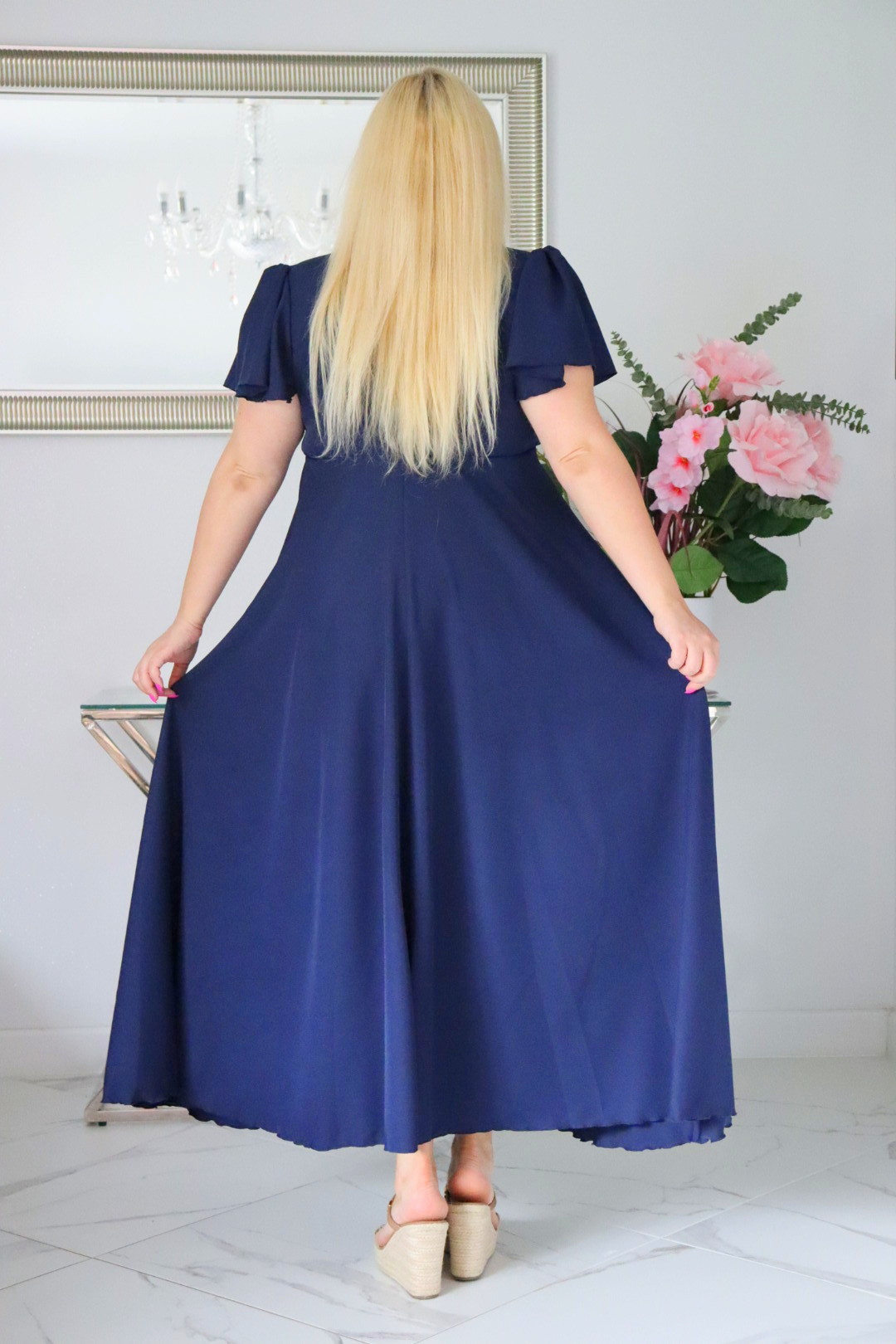 🇵🇱 Polski ProduktSukienka NESADINA rozkloszowana kolekcja naturalny skład granatowa