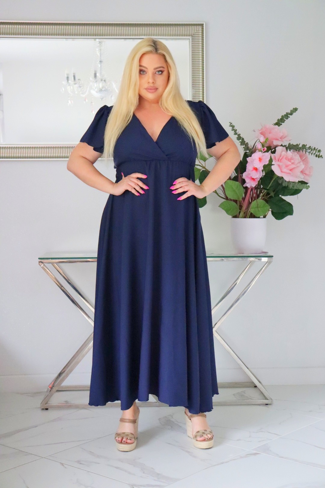 Sukienka NESADINA rozkloszowana z kopertowym dekoltem.