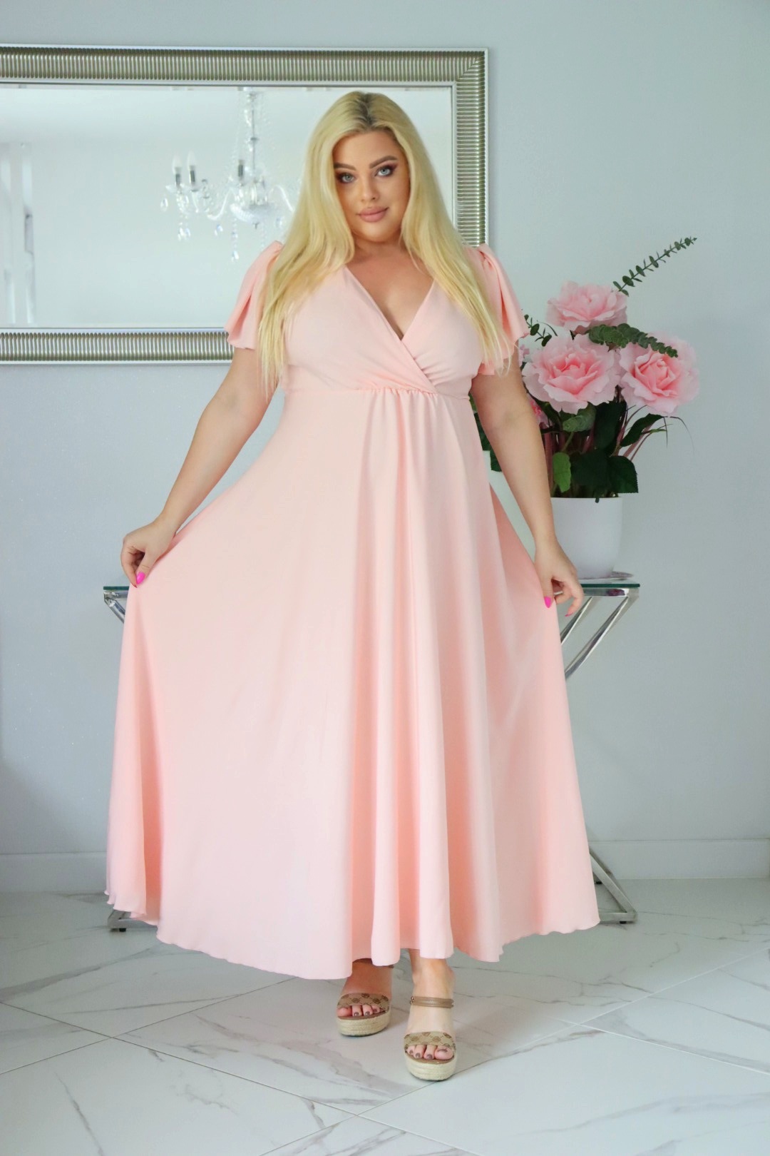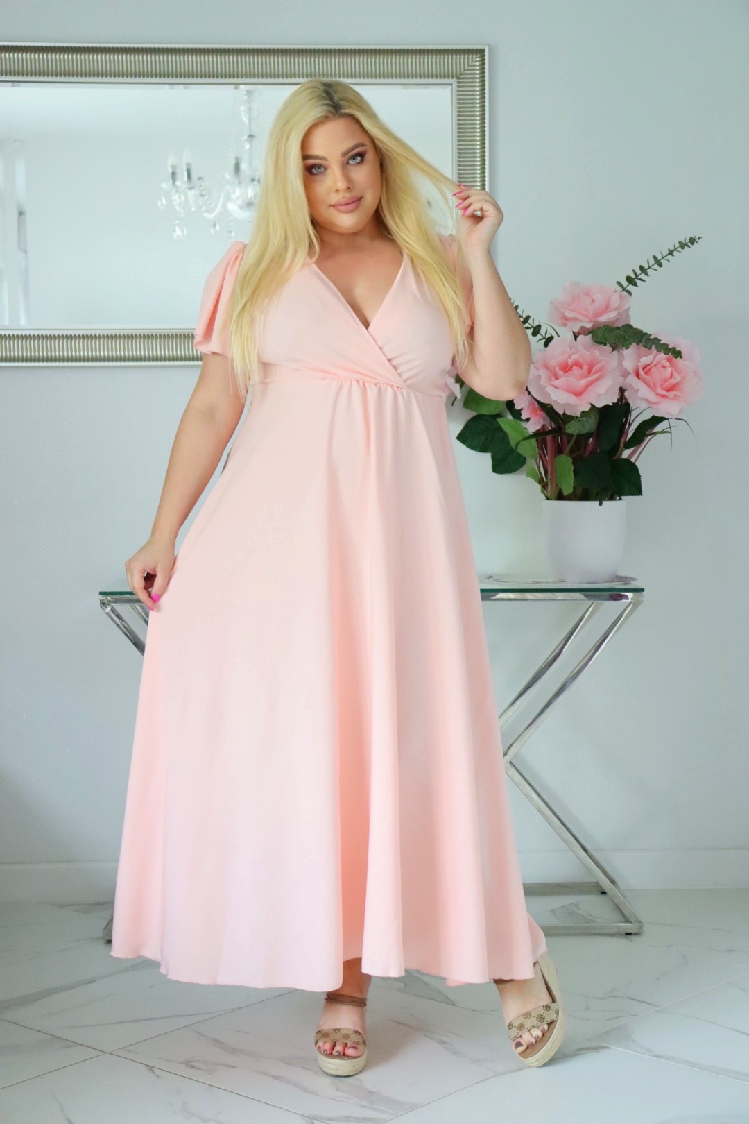 🇵🇱 Polski ProduktSukienka NESADINA rozkloszowana kolekcja naturalny skład pudrowy róż