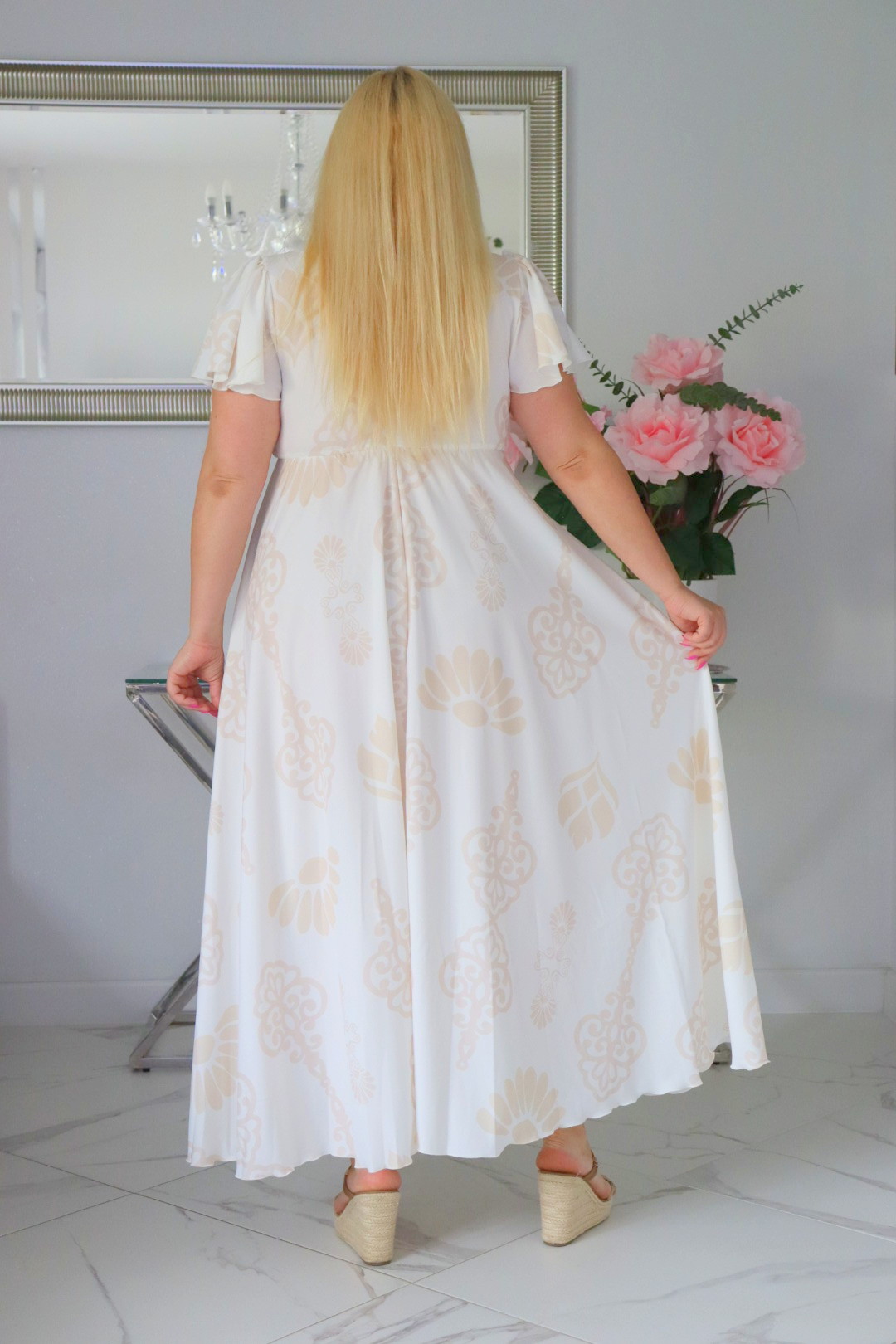Sukienka NESADINA rozkloszowana kolekcja naturalny skład wzór Royalty z nude
