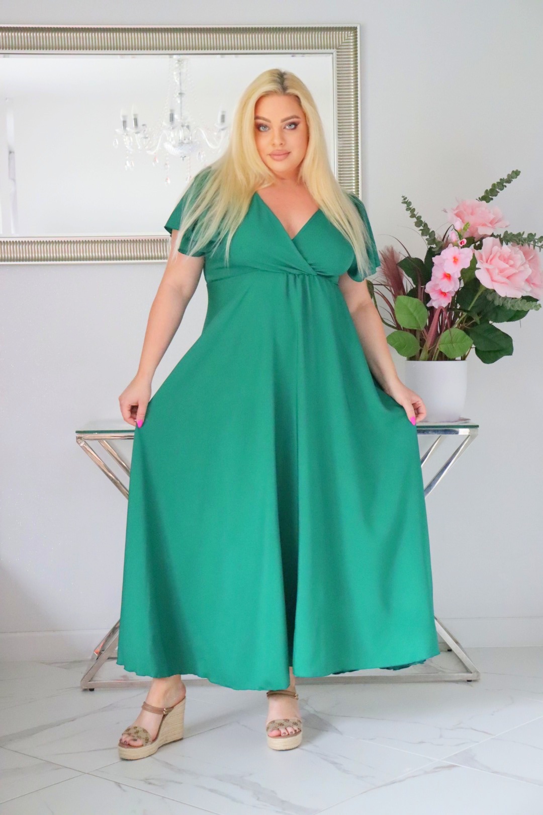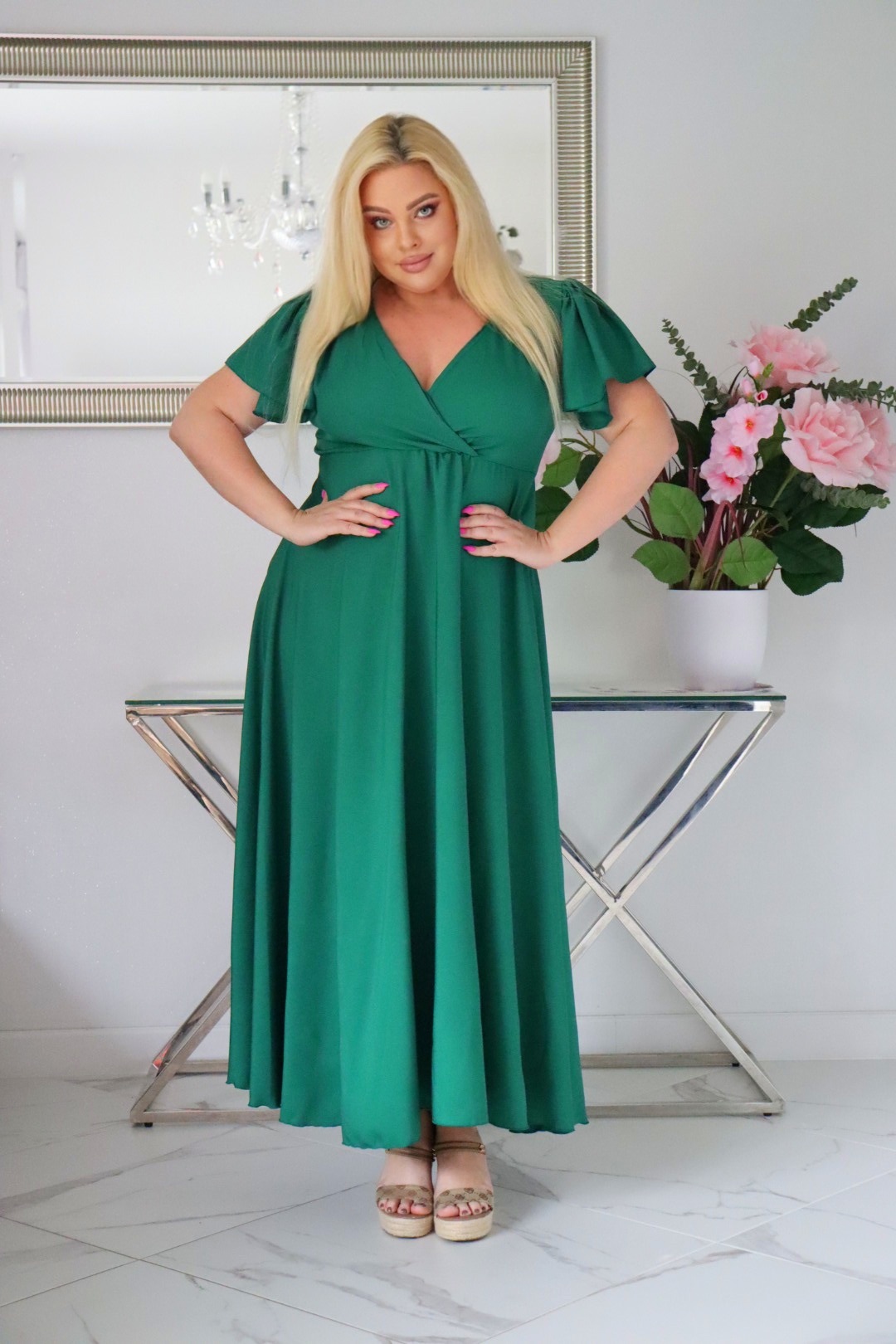 Sukienka NESADINA rozkloszowana z kopertowym dekoltem.