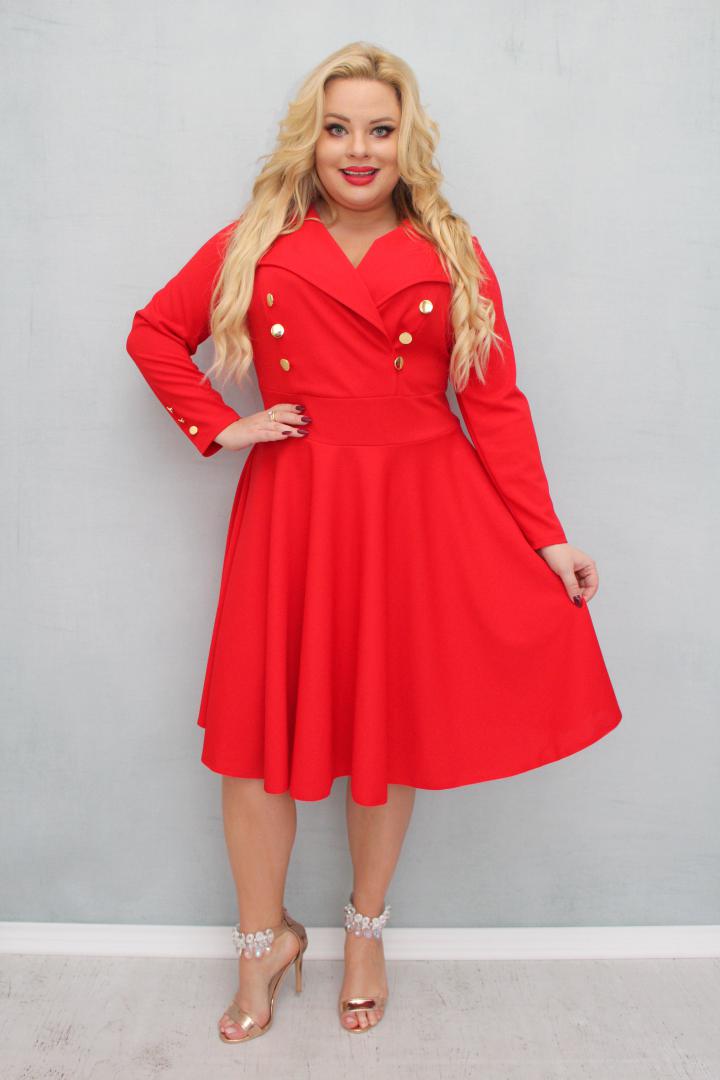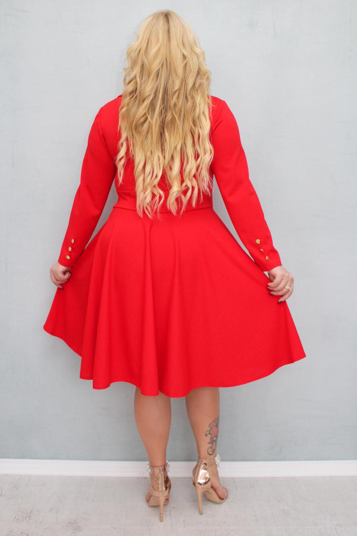 🇵🇱 Polski ProduktSukienka Paula rozkloszowana złote guziki marynarka czerwona