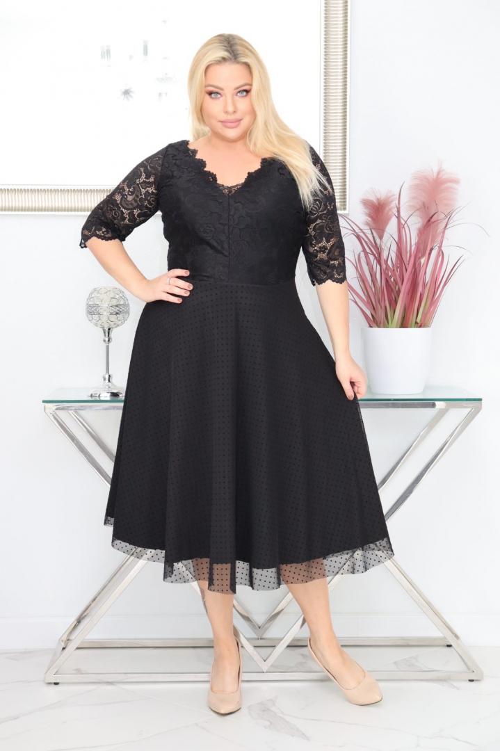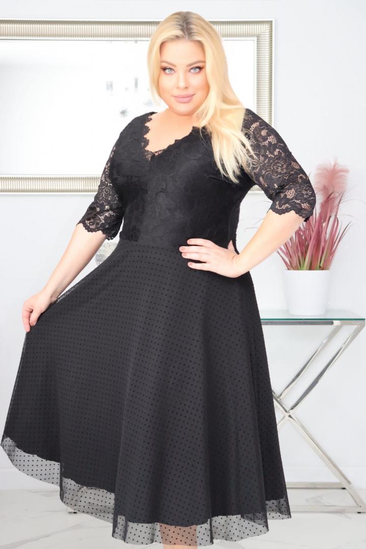 Sukienka Pisla rozkloszowana elastyczna koronka koło z tiulu czarna