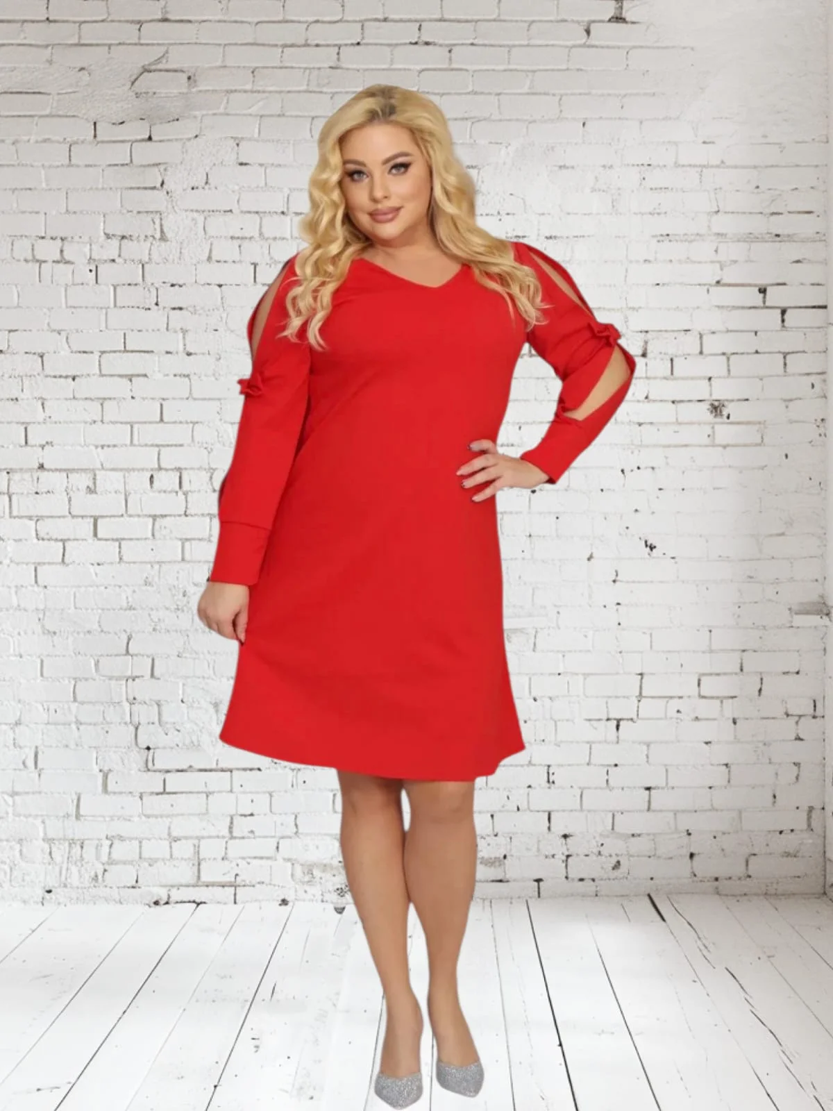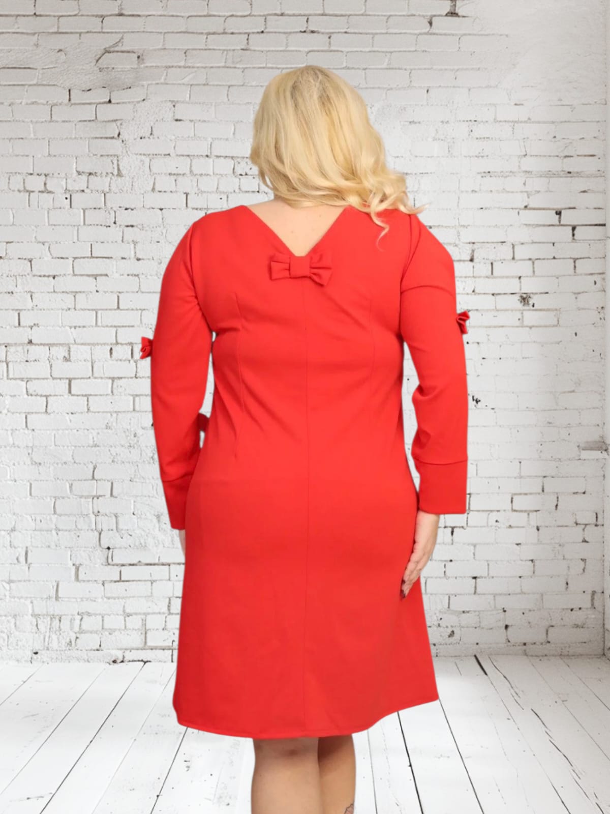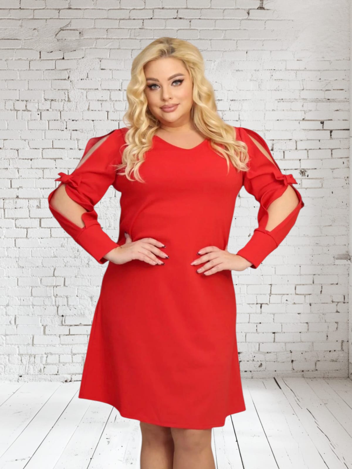 Sukienka Sansa trapezowa rozcięte rękawy z kokardkami czerwona