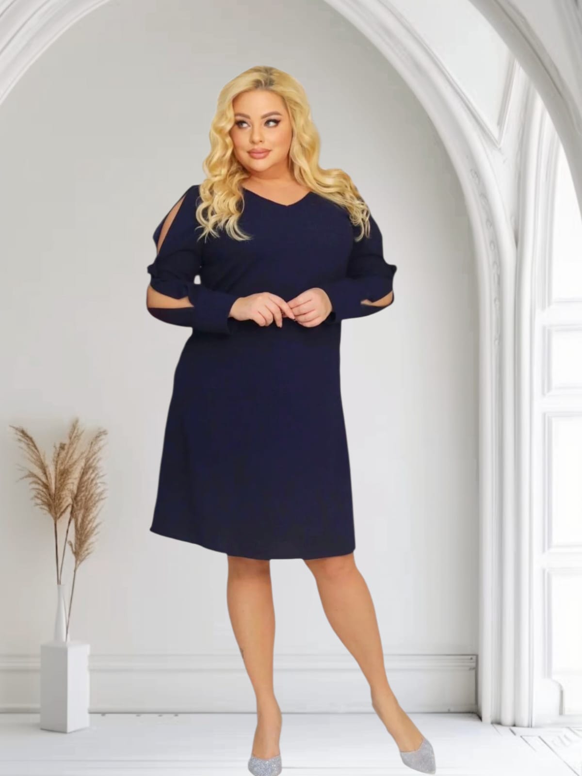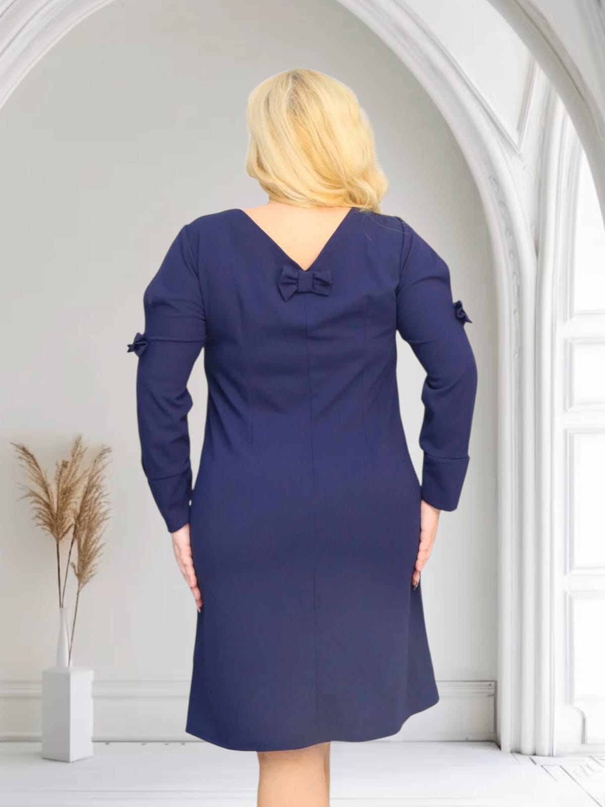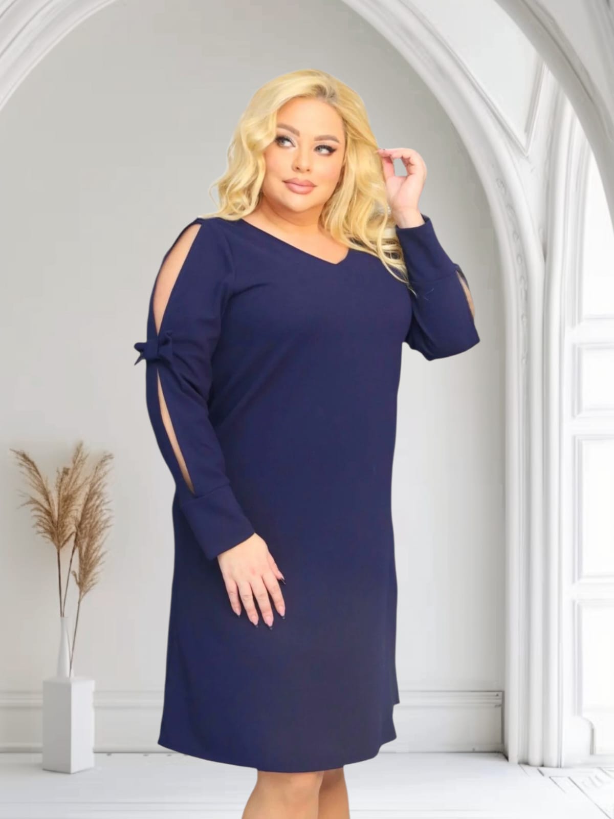 🇵🇱 Polski ProduktSukienka Sansa trapezowa rozcięte rękawy z kokardkami granatowy