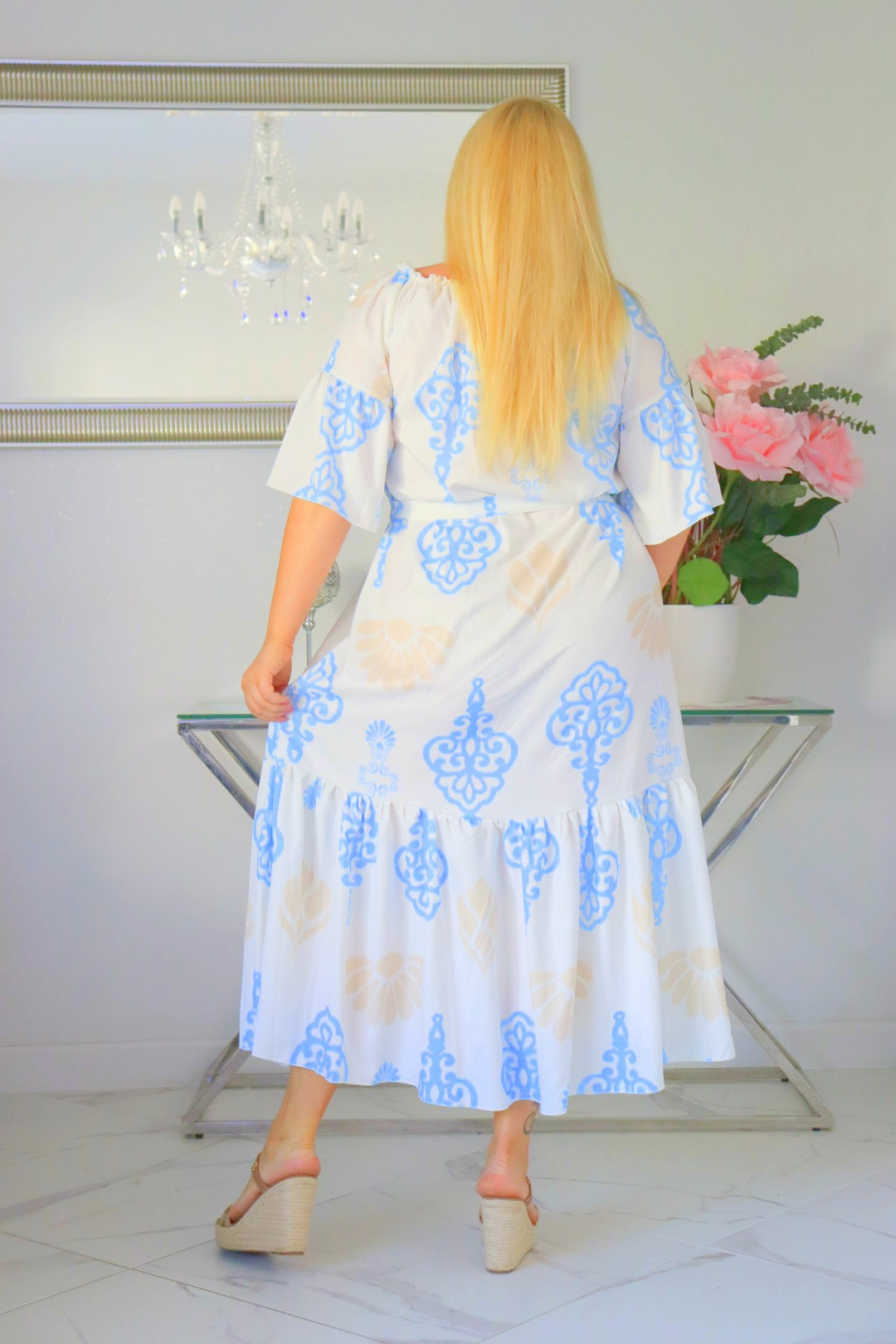 🇵🇱 Polski ProduktSukienka SERMINA kolekcja naturalny skład HISZPANKA print ROYALTY z błękitem