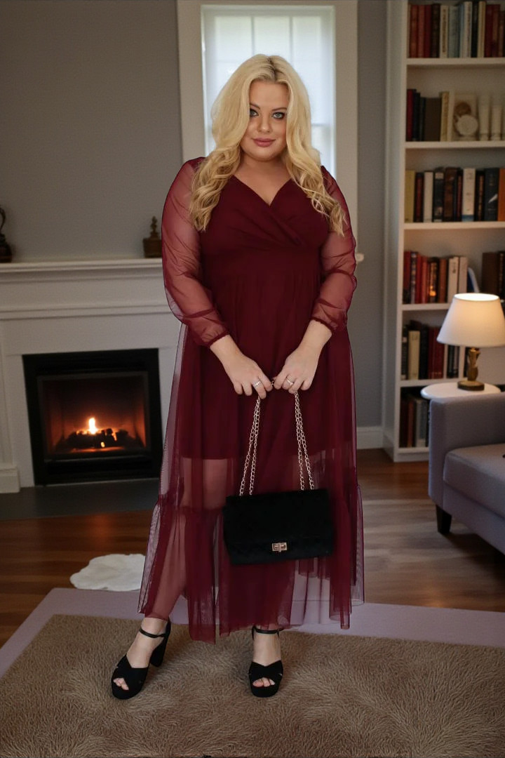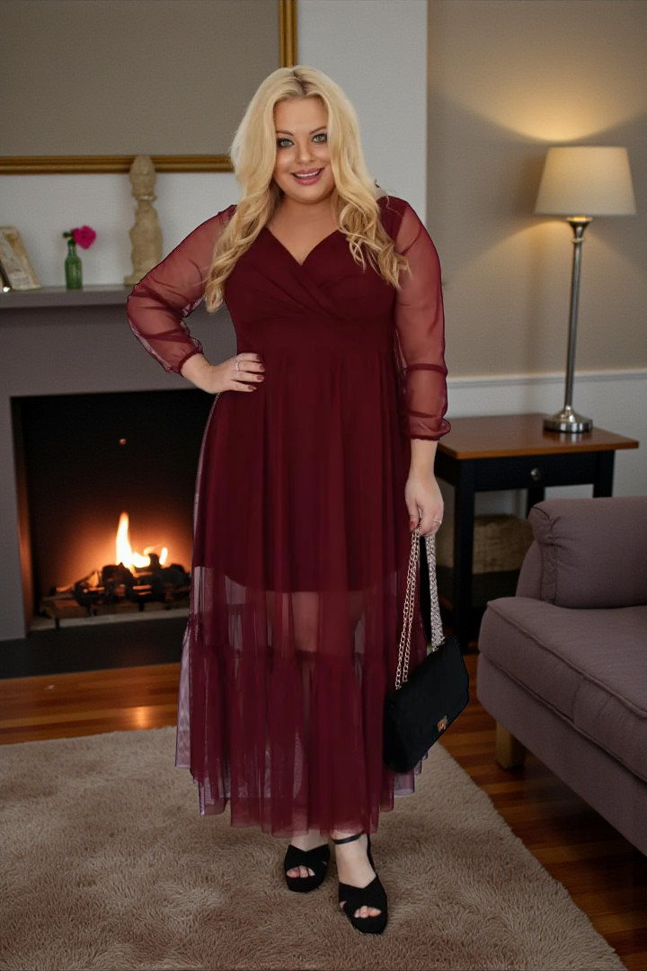 🇵🇱 Polski ProduktSukienka Sorena lekka zwiewna rozkloszowana bordowy tiul