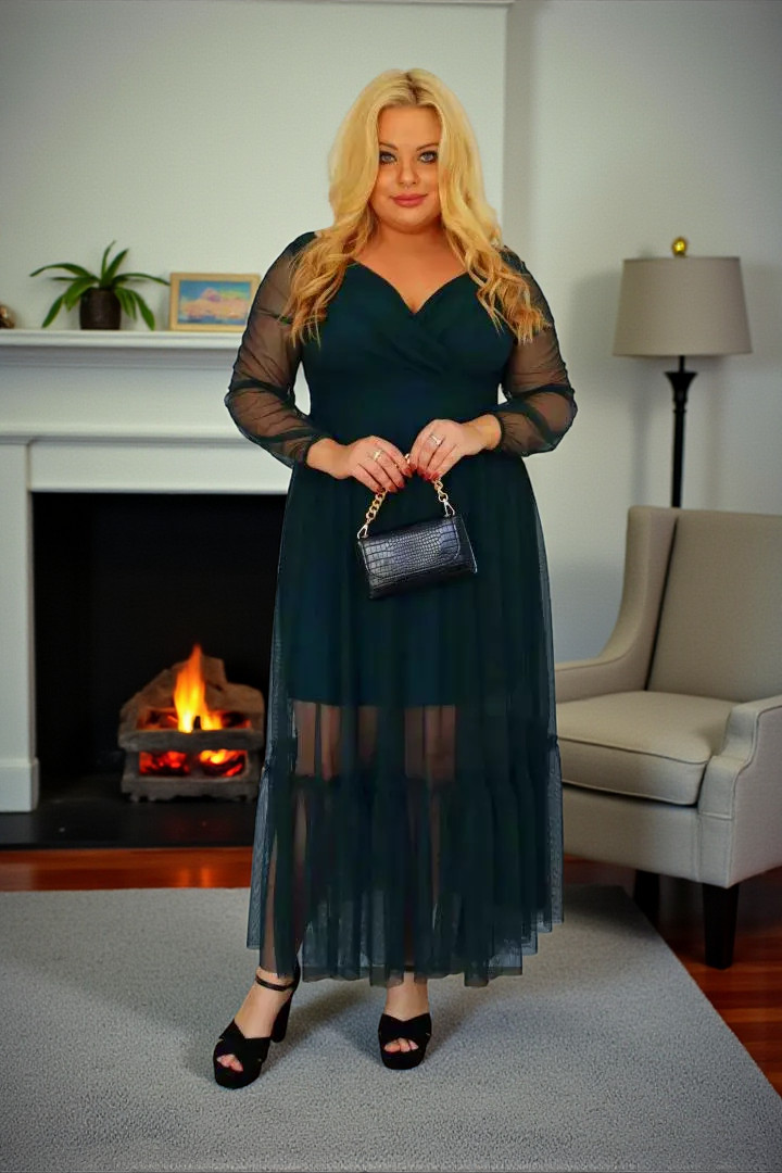 🇵🇱 Polski ProduktSukienka Sorena lekka zwiewna rozkloszowana butelkowa zieleń tiul