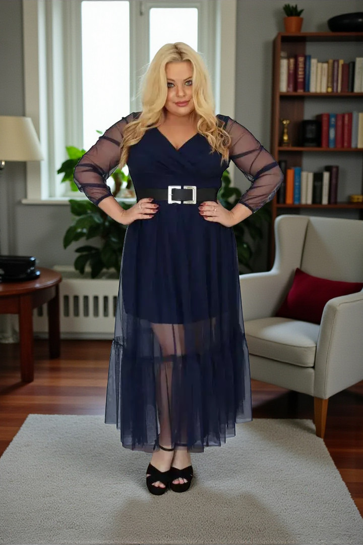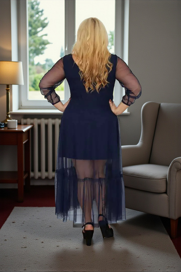 🇵🇱 Polski ProduktSukienka Sorena lekka zwiewna rozkloszowana granatowy tiul