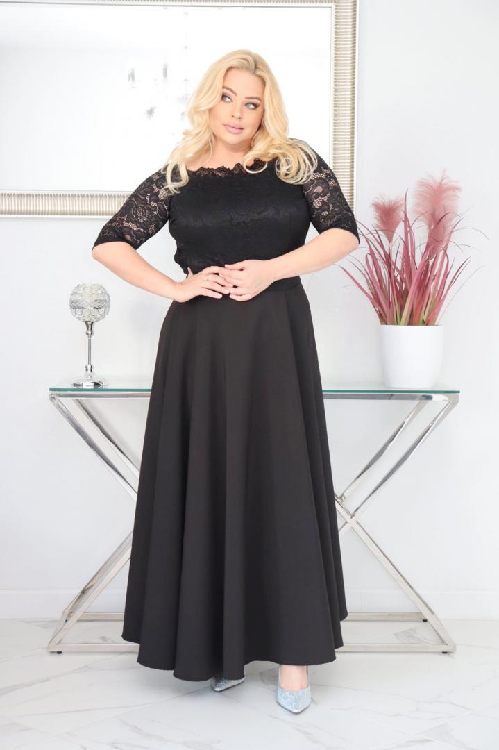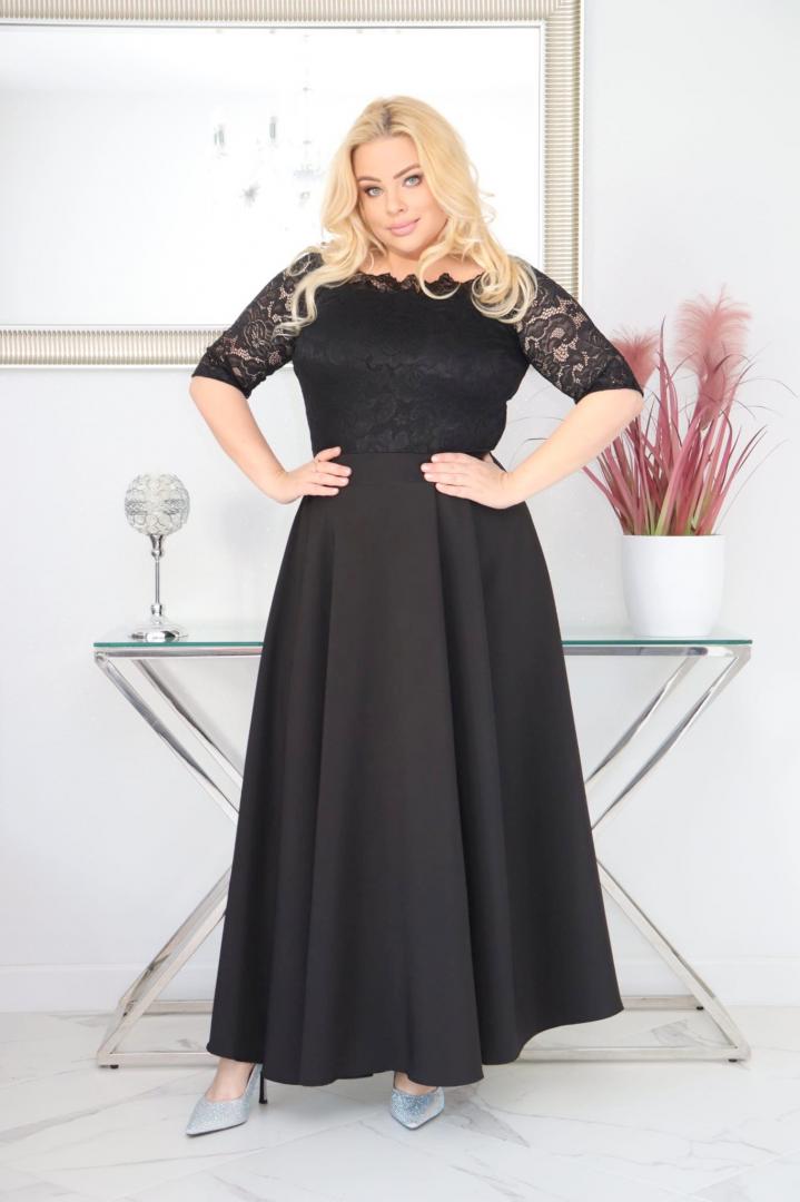 🇵🇱 Polski ProduktSukienka Tamara maxi wieczorowa rozkloszowana ekskluzywna hiszpanka koronka gładka czarna