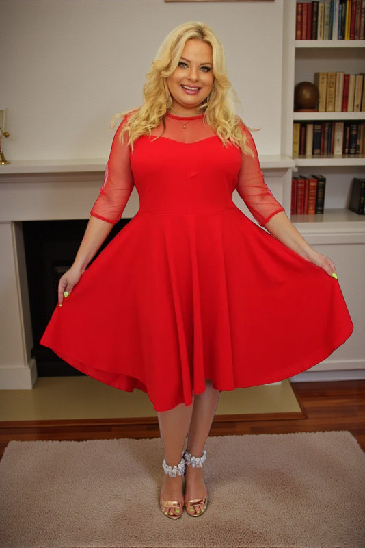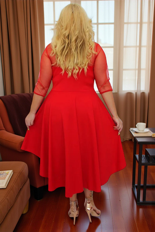 🇵🇱 Polski ProduktSukienka Valentina rozkloszowana asymetryczna dekolt serce tiul czerwona gładka