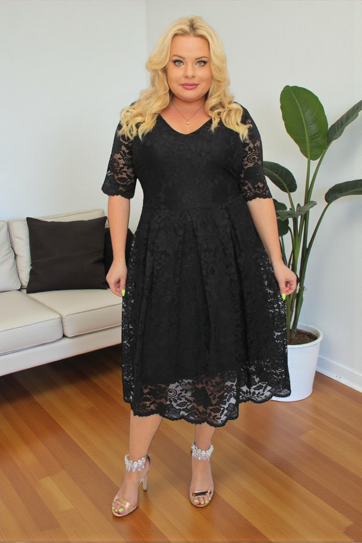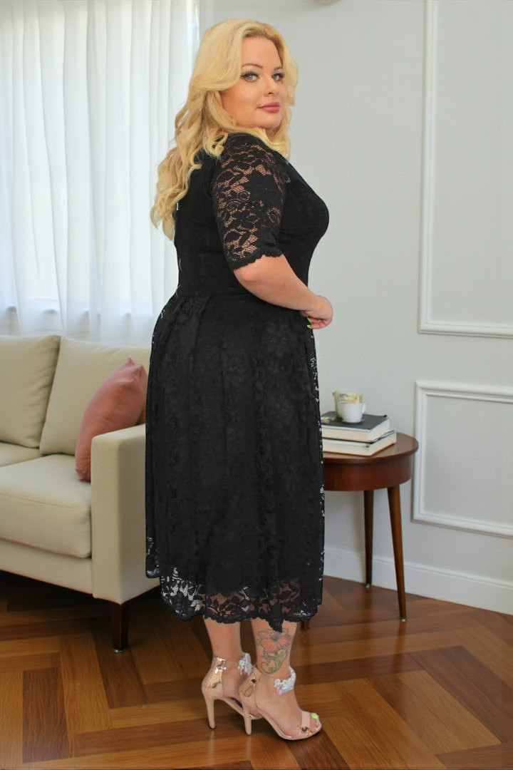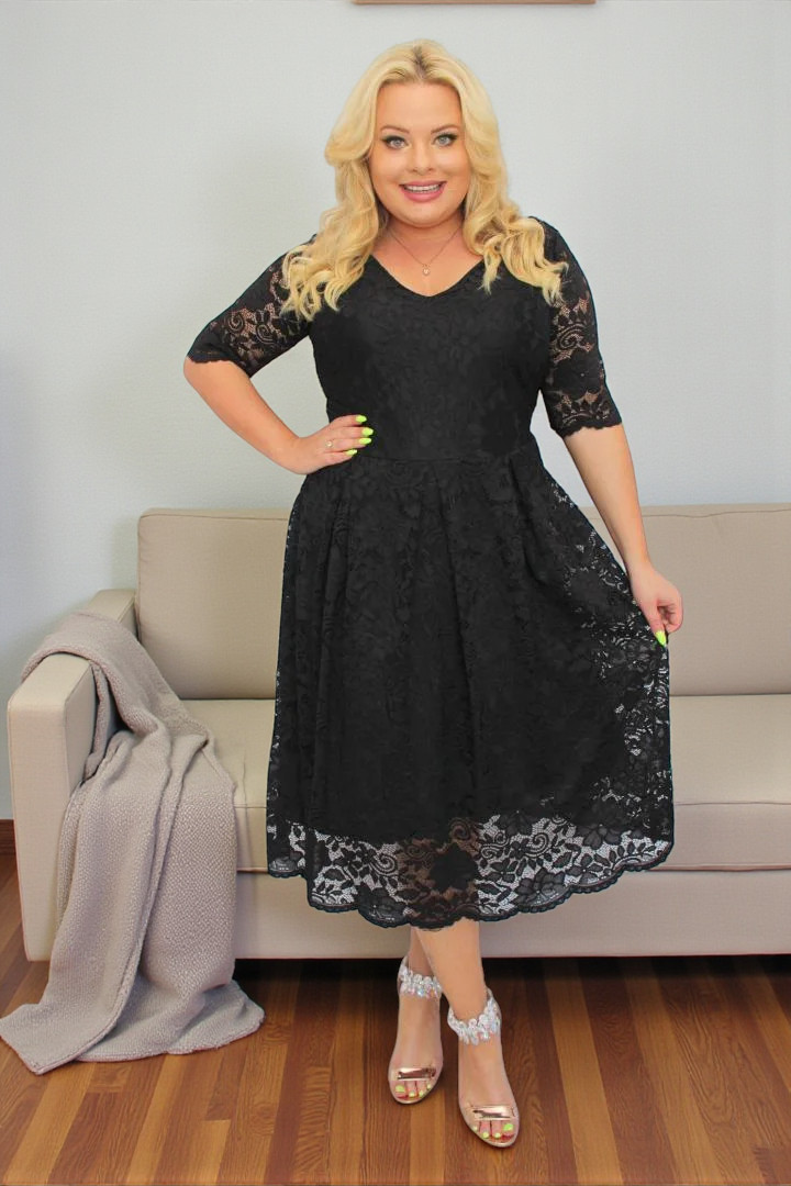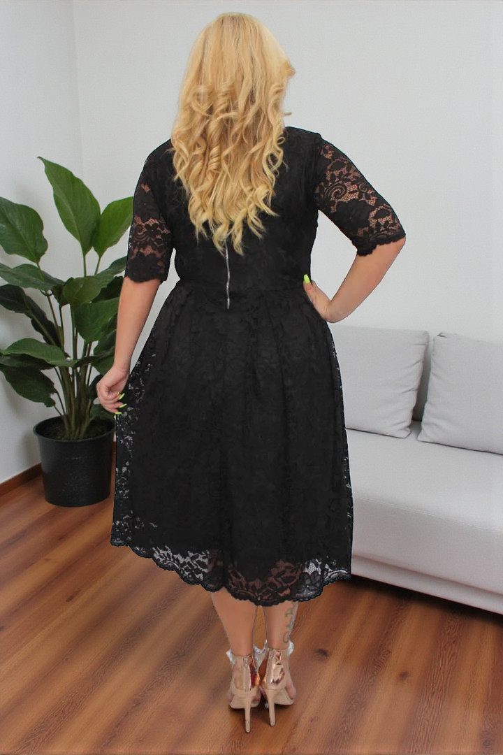 🇵🇱 Polski ProduktSukienka Vivienne koronkowa rozkloszowana czarna koronka kwiaty