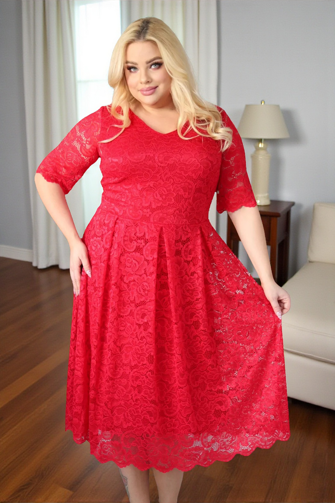 🇵🇱 Polski ProduktSukienka Vivienne koronkowa rozkloszowana czerwona koronka kwiaty