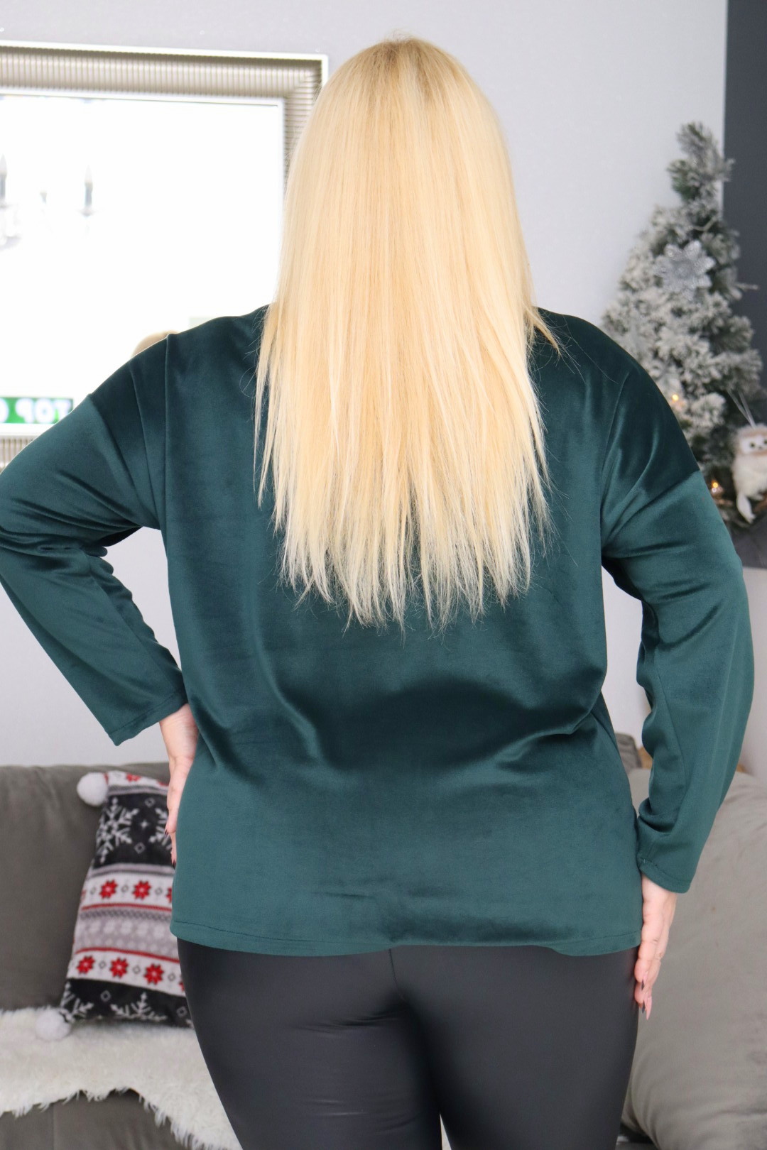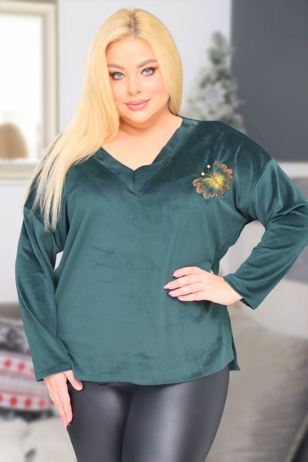 🇵🇱 Polski ProduktTunika bluzka welurowa 100% bawełna Isla wyhaftowany motyl butelkowa zieleń PROMOCJA