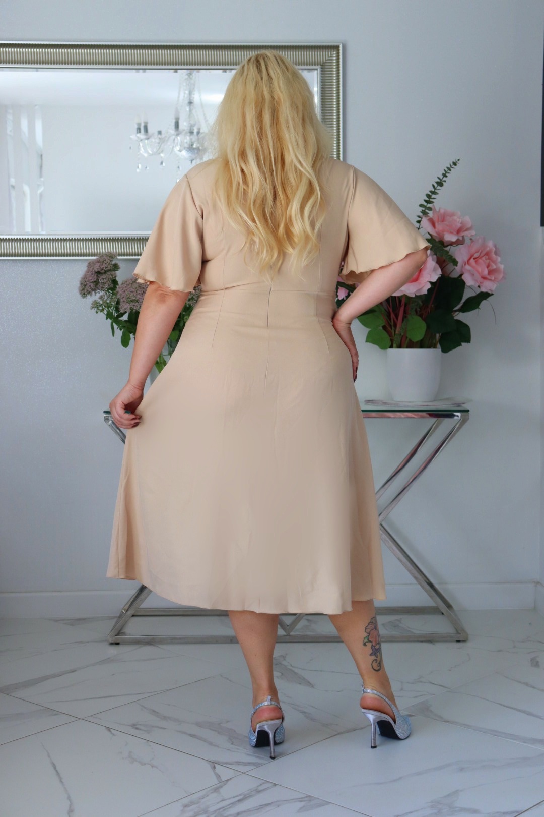 🇵🇱 Polski ProduktVelena PLUS SIZE: Sukienka z biżuteryjną klamrą – natychmiastowy Look Premium! Nude!