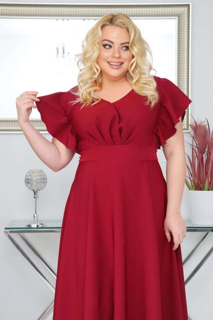 Sukienka Colette rozkloszowana kopertowy dekolt – Zanim kupisz, zobacz film, który pokazuje jak pięknie się układa. BORDOWA