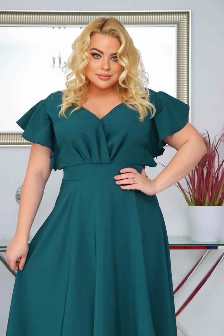 Sukienka Colette rozkloszowana kopertowy dekolt – Zanim kupisz, zobacz film, który pokazuje jak pięknie się układa. BUTELKOWA ZIELEŃ