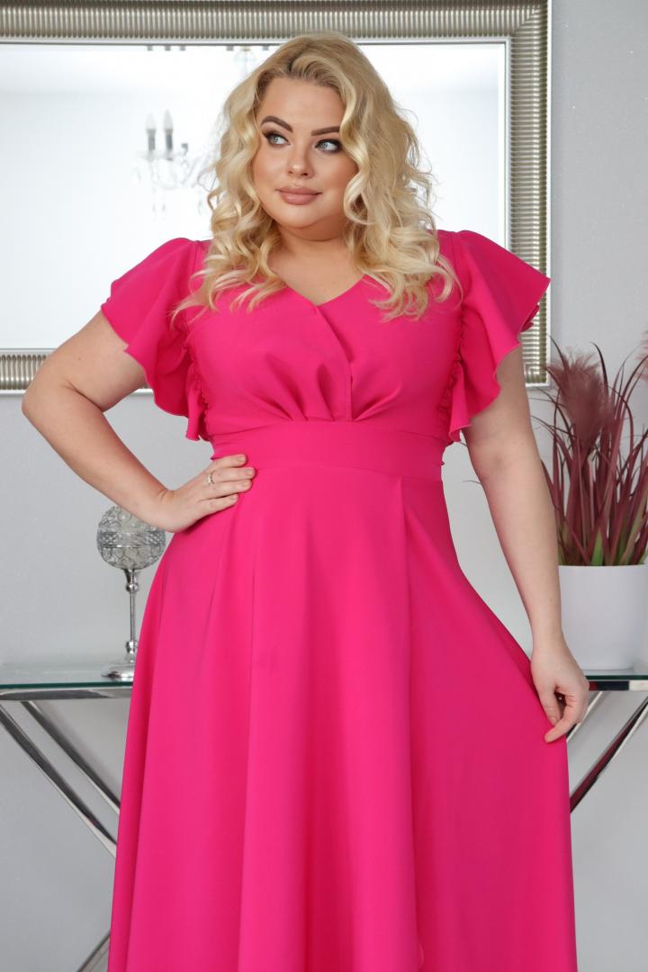 Sukienka Colette rozkloszowana kopertowy dekolt – Zanim kupisz, zobacz film, który pokazuje jak pięknie się układa. FUKSJA
