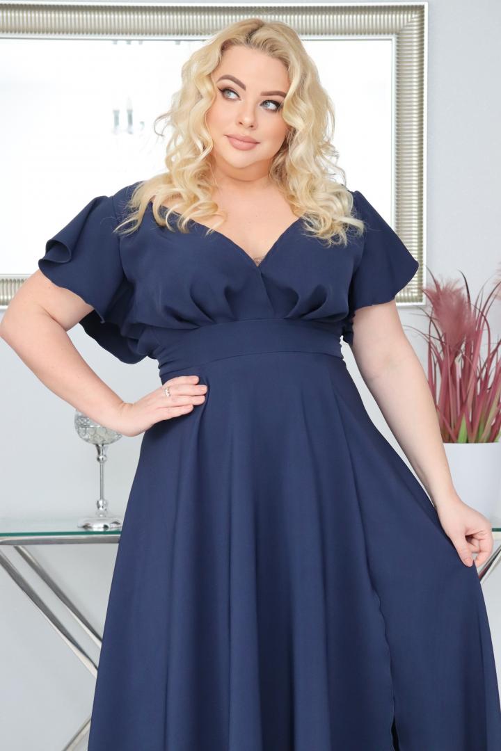 Sukienka Colette rozkloszowana kopertowy dekolt – Zanim kupisz, zobacz film, który pokazuje jak pięknie się układa. GRANATOWA